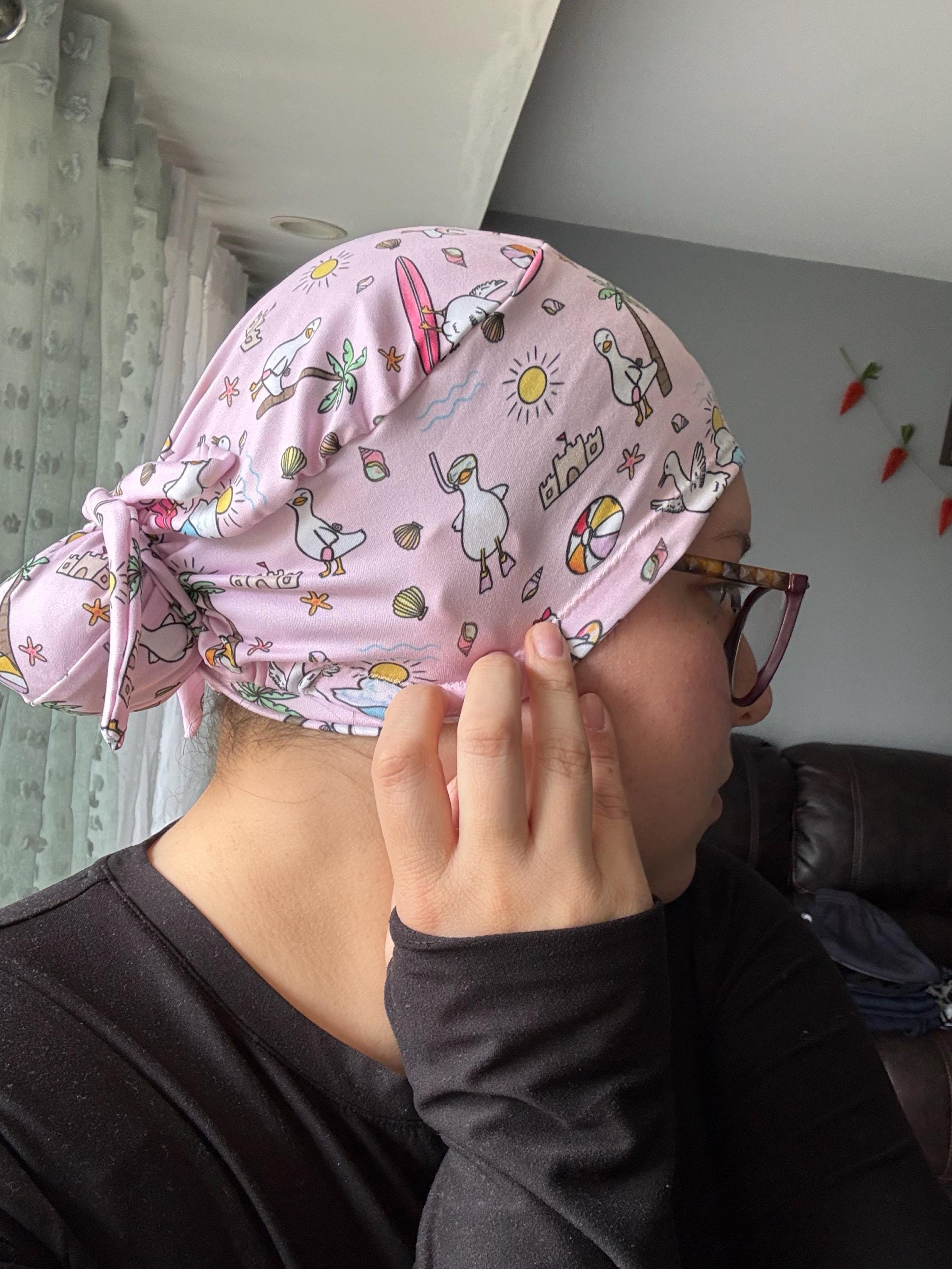The scrub cap is adorable, the design on it is so cute! It’s also very soft and stretchy so if you have a big head like me you’ll like this cap. The material is also not overly thick which is good to make it breathable on your head. I would def recommend!
